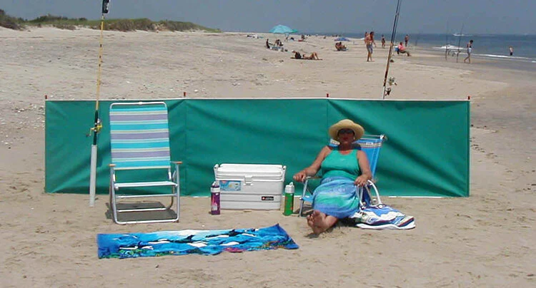 A windscreen is a portable, fence-like structure used to block blowing winds and sand. Windscreens are also sometimes referred to as: beach wind blockers, wind break for beach, privacy fence.